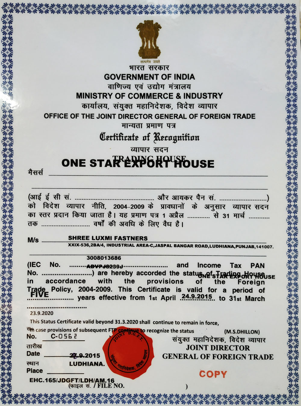 Being an ISO 9001:2015 certified company and the leading company awarded by the government of India with the honor of "One Star Export House," SLF has achieved the sales of up to US$8 million in export. Facing the fierce competition from India and other countries, SLF's main goal is to satisfy customers' demand to its fullest and achieve on time delivery at all times. On the other hand, in order to locate more business opportunities in the U.S.A market, SLF had also exhibited at the National Industrial Fastener & Mill Supply Expo in October 2016. We know and understand the needs of US clients and our step-by-step quality procedures & control of product manufacturing at every stage help us retain the confidence in our clients worldwide.
